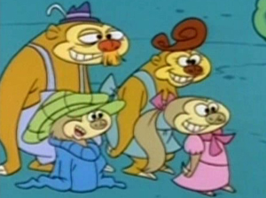 Appearances- Slowwww GoingHero of the Year Sonically Ever After Bio- The Sloth Family were a group of Sloths that Sonic saved and then they saved him when Robotnik invented his Slow-Mo ray. The Family is the Mother, The father, Rocket (Son) and the daughter. Rocket is the only one that talks and the only one that is given a name in the Episode and he is the fastest sloth on Mobius. Which doesn't really mean anything apart from the fact that he can be seen to move and often falls out of trees. Notes Relating to the Character- *Rocket appears alone in 'Hero of the Year'*In 'Sonically Ever After', Rocket has a different sounding Voice but it is clearly him, also the sister talks. The Mother and Father don't appear |