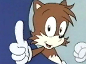 Appearances- All Bio- When Tails was Young, he was abandoned or lost (fact unclear) he tried to find his own family. Since he knew he could fly he tried living with flying animals like birds. After being kicked out of the birds nest, he landed on Sonic. It was Sonic that told him that he was a Fox. Tails ended up hanging around with Sonic and he got the nickname 'Tails' because he had 2 Tails. Notes Relating to the Character- * Tails has said that he can't write because he is only 4 and a half yet he has been shown in other episodes to be writing pretty well* While most sources do credit his full name 'Miles `Tails` Prower, as in the games, and his first name is stated as Miles, we never hear his surname in the show itself and since he doesn't know his parents (but knows his name) it's unknown if Prower is his surname in the show, but it seams likely. |