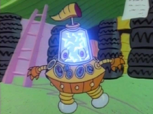 A dumped Robot that was meant to creature weather but could only created bad weather. Lives in Scrap Vally.