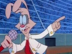 Appearances- The Mystery of the Missing Hi-topsThe Magnificent Sonic The Mobuis 5000 The Little Merhog Bio- The Announcer of the Robolympics. In Magnificent Sonic, a Rabbit looking just like him is sheriff of Tranquil Gulch until he is scared away by one of Robotnik's Robots. Notes Relating to the Character- * We can't be 100% sure that the rabbit in Magnificent Sonic is the same Rabbit but he looks just the same done to hair style and glasses, so it isn't impossible that it is him.* Like with Above for the same reasons, it is just a Character that looks just like him that starts the race in Mobius 5000. |