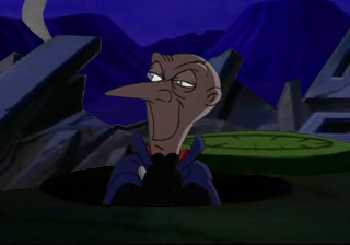 In an early Draft (same as above), Snively climb out of a man-hole (not his lift) and the episode ends with him saying 'Now it's my turn'. The Eyes weren't there at all.