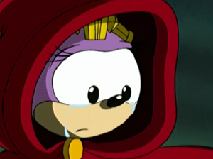 Appearances- All Bio- Since the Series is more set about the lives of Sonic, Sonia and Manic, there is not too much set about there mother before this. We know that she was probably born into the royal Family and she knew that Robotnik was going to take over. She found out that if she spilt up her Children they would be save from Robotnik and One they day would find her and Robotnik could be beaten. She is often seen in the background watching the Children but they have yet to met up with her. Bio-Analysis of Character- At Different stages of the show, Queen Aleena has had different views on her hiding. Early in the Show, she is in hiding but still meeting up with friends how could help her in some way (like in 'To Catch a Queen'). Thought this seams to hint that she is planning something, a lot of times she is just 'wandering' around Mobius with no real goal in mind. Later on she appears to have a much more active part in the freedom fighters, giving more direct help as in 'Head Games' and more so in 'Sonia's Choice', in which she appears to have a much closer link to the Freedom Fighters then has been shown before. Despite all this, The Hedgehog haven't caught up with her and they still seam to believe she is in a more static location (see 'Country Crisis). For information shown, it appears that they will get together more in the near future then the too distance future. Notes Relating to the Character- * Some People haven't noticed some of the method to Queen Aleena's actions, mostly due to the lack of information given in the show, but it appears pretty clear that Aleena knew who she had to give the children too for them to grow up safe and trained enough for there mission to stop Robotnik. While there is no clear sign of this, a lot of her actions do seam to say this and it is clear she knows a lot about the future and whatever must happen before they get together, even if she doesn't know the timing of such events. |