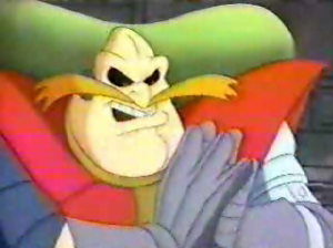 Appearances- All Bio- During the Great War, Robotnik worked with the King as War Minster and helped win the War with his Robots. When the war was over, he gave plans to disarm the army and create a more peaceful kingdom. But this was not his real Plan and all the Robots were loyal to him. In 2032 Robotnik took over control of the City and Renamed it 'Robotroplis'. He then used plans created by Sir Charles to make his Robotiser He then robotised the City and it's people. Some people got free. He has spent the Rest of the time trying to take over the rest of the world and it's people. Notes Relating to the Character- * Early drafts had Robotnik's background story based on much of the western ideas of Dr Kintobor, in that he was working on his lab, with an egg, when it exploded and the 'essence of rotten-eggness blended with [his] DNA'* Early episodes had a Metallic echo to Robotnik's voice, but this was removed during Series 1 |