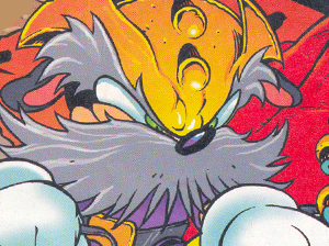 When Sonic returned to the Special Zone, he was attacked by Blockhead Bill, who thought Sonic was really the Crimson Cobra. In the end they stopped him and got him to see that Sonic wasn't the Cobra. Blockhead Bill is also the Father of Mighty and goes around with his Business Partner, Society Max |