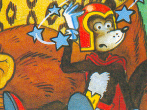 Madmeano is the old enemy of the Zed Monkeys and dressed up in a padded monkey suit and create hero hour so his criminal friends could commit crimes. In the end, Sonic found the tag on the monkey suit and his plan was unmasked. |