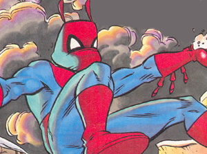 Insect-guy was ordinary Norman Nerd until he was bitten by a Radioactive insect which game him super insect powers! He became one of the main Super heroes of New Tek city, even though we never really got to see him. |