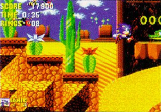 Level Section- Go to the Options Menu and on the Sound Test Choose the Following Sounds by pressing 'c'- '19','65','9','17' You will hear a Ring. Press Start to reset then Press A and Start together on the Title Screen to Enter Level Section. Super Sonic- On the Level Section Screen, Play Sounds '4', '1', '2' and '6'. Then select your level and Play. When you have 50 Rings you will be able to turn into Super Sonic as per normal Debug Mode- on the Level Section Screen, play the sounds '1','9','9','2','1','1','2' and '4'. When you select a Level, Hold down A and press Start until the Level Loads. You will see the Screen Co-ordinates where the Score should be to confirm it has worked. When you Press 'B' you will turn into an Level Object, and pressing again will turn you back. 'A' will change to the next object, 'C' will place the object in the level. You can use this to cheat the game. If you die, Press 'B' to turn into an object and when you turn back, you will be alive again. Also, you can turn into a Power Ring to either give you a bunch of Rings or give them to you via Tails. Selecting a Box which is a bit like the End Level cage, will end that current act as if you use completed it. A Box with a 'S' will give you 50 Rings and turn you into Super Sonic. 14 Continues- Go to the Sound Test and play the following Sounds: 19, 65, 09, 17, 01, 01, 02, 04. Next, highlight the player selection and press start. This will start you on the first level with 14 Continues. | ||