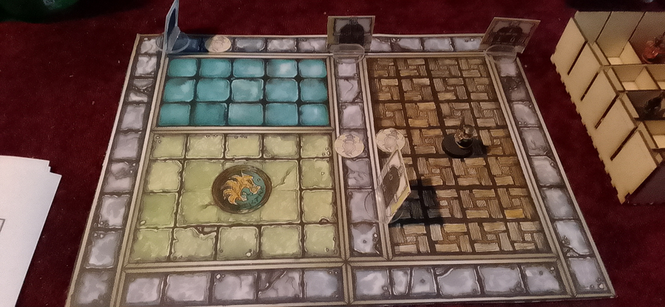 NOTES: I put doors on there side to show they were opened as this seamed the easiest option for now, and removed the door (but left the base) for a door that was smashed. Aside from forgetting the movement for the goblins being 2 at the start, I believe I made one other mistake. When the goblins were 1 space away from a wall in front of them, I moved only 1 (as this does make sense with the ‘move directly ahead’. However, I forgot to roll a dice to use an action to turn once it got there, and they just moved in the correct direction with the next movement. As this was mostly 90 degree movements, It was no real issue but maybe they would have moved a bit slower if they had to use a point to try to figure out what direction to go. I also completely screwed up the Gnomes defence dice for the second half of the game where he was running. As he was running away, he shouldn’t have been able to defend himself since he couldn’t see the goblin behind him.