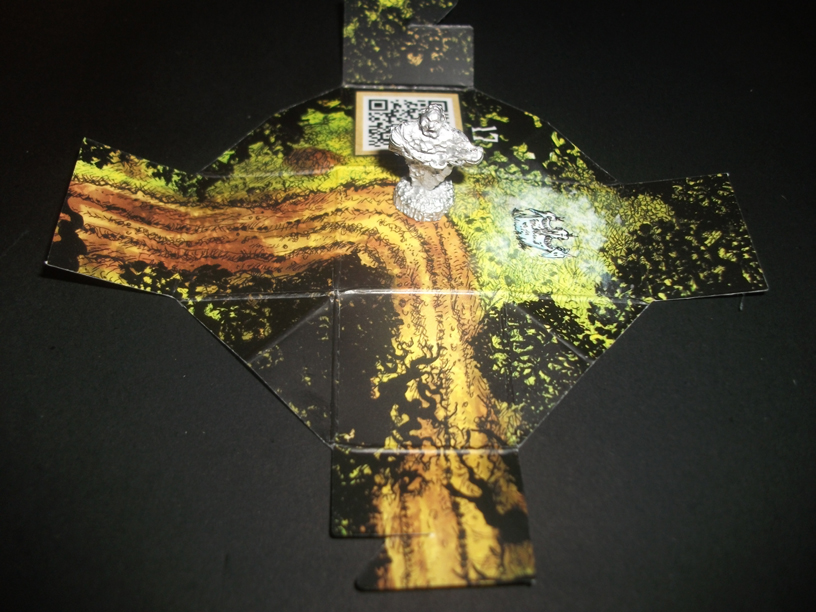 I roll a 1! yay! Miss Red stays looking at this scary sight. The spectre is fully visible and the King points to his bald head, hinting he wants something on it. Well, I got nothing he might want. So I’ll have to just carry on West. And with my Endurance down to 2, I think I might need to eat that cheese just to be on the safe side, putting it back up by 3, to 5.