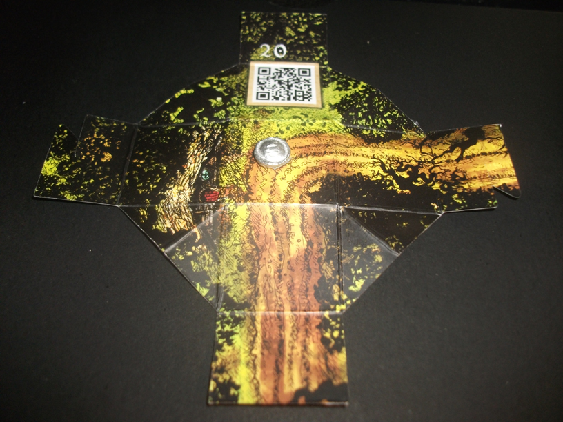 Oh dear.. Red is not having a good day today.. She rolled a 2.. added to her strength of 3 makes 5! the Lady’s strength is 2 but rolls a 6! She hits me with her rolling pin and I lose 2 Endurance as I slink away. Problem is, that’s 2 off my 4 endurance.. Plus one to move to the next tile leaving her with only 1 endurance, No pie and only the bread left to eat. Question is now do I eat the bread now, or wait to see what happens tomorrow? As you can eat the food at any time… I think I’ll wait. If something jumps out at me, I’ll quickly eat the bread like Popeye! Meanwhile, the tile is a bend, I’ll put it so I go north.