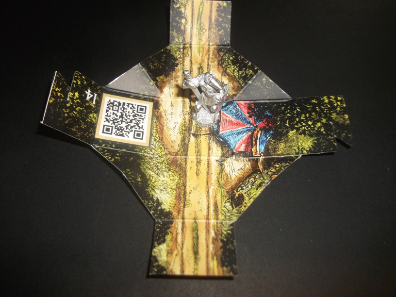 Oh.. Red comes across a tall lanky man in front of a little tent while is busy fencing with a scarecrow. He says he is Sir Gebbon the white, a questing Knight and he is looking for foes to fight and he can be used right now to get rid of any monster currently on the board. That’s useful.. however.. sigh.. Red has 2 endurance left… There is no way she can backtrack to get any food before she passes out.
