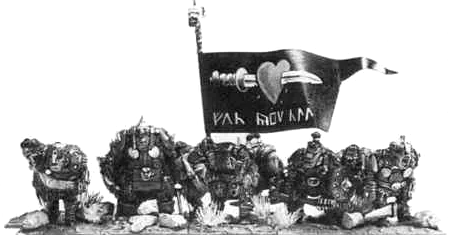 We then have the Boo-hiss evil Lord Vassago’s Army and it points out how nasty and evil this necromancer is and… huh.. he is a Necromancer in charge of Orcs and Goblins.. Undead not really being a army thing right now, eh? also WAY before Chaos as a force. There are some undead through, for example the second in command, the undead Champion Spectre N’aarsh… mm.. that names has a ring about it… (also, the picture of Lord Vassago’s Standard Bearer… Chaos Sorcerer? is that you? ^_^ okay, it’s not, that figure wasn’t even sculpted yet but.. mm.. very much get that vibe from him.